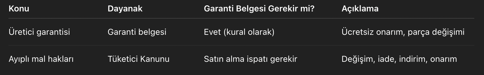Yani garanti belgesi olmadan garanti zorlaşabilir; fakat yasal haklarınız tamamen ortadan kalkmaz.