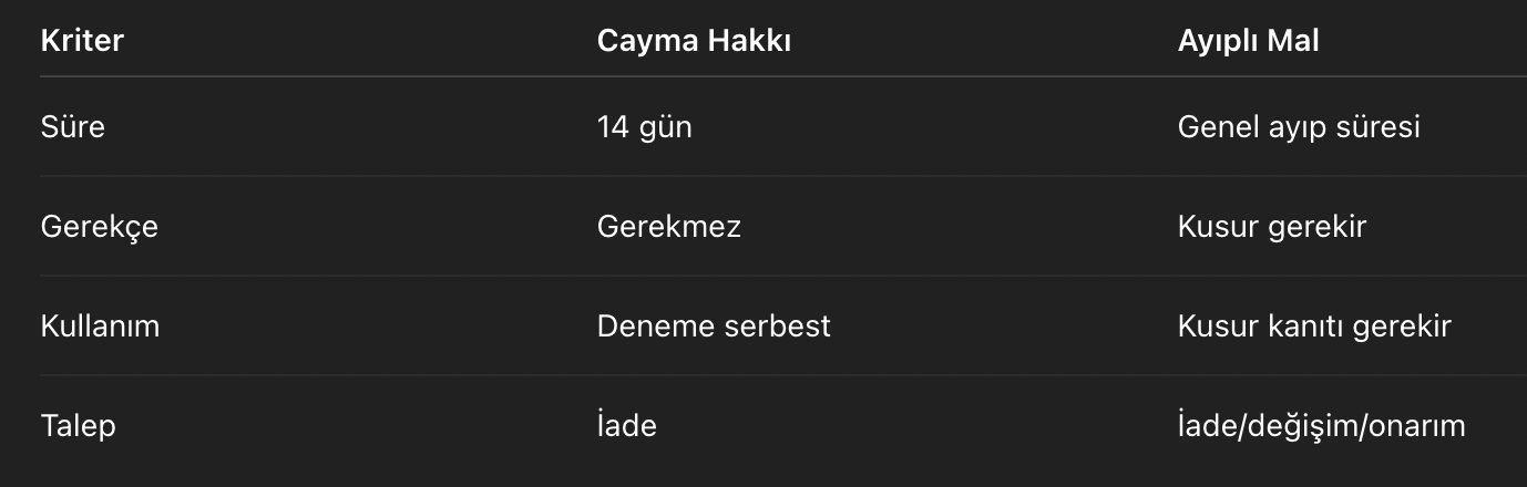 Önce teşhis: Bu olay “cayma hakkı” mı, “ayıplı mal” mı?